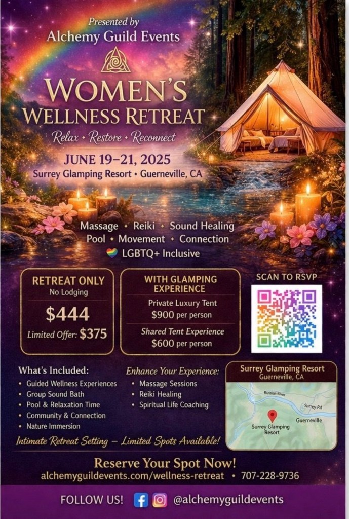We are so honored to invite you into a deeply nourishing Women’s Wellness Retreat, held in the serene beauty of Guerneville, California. From June 19–21, you are welcomed into a heart-centered container designed for restoration, connection, and gentle transformation.